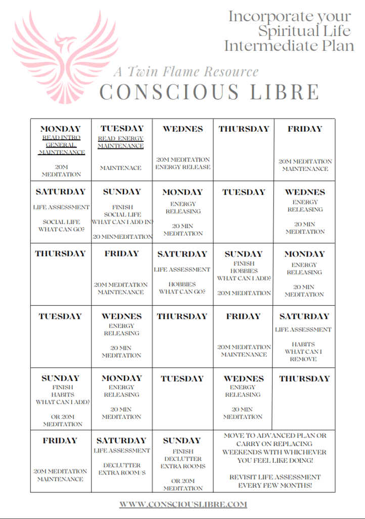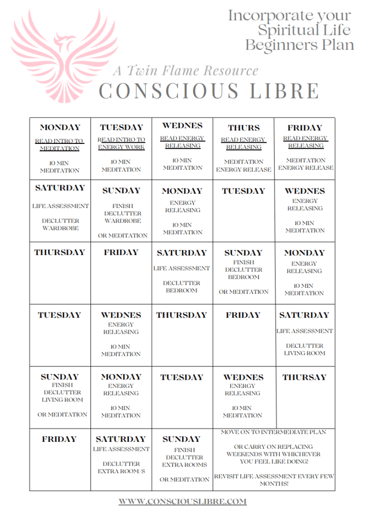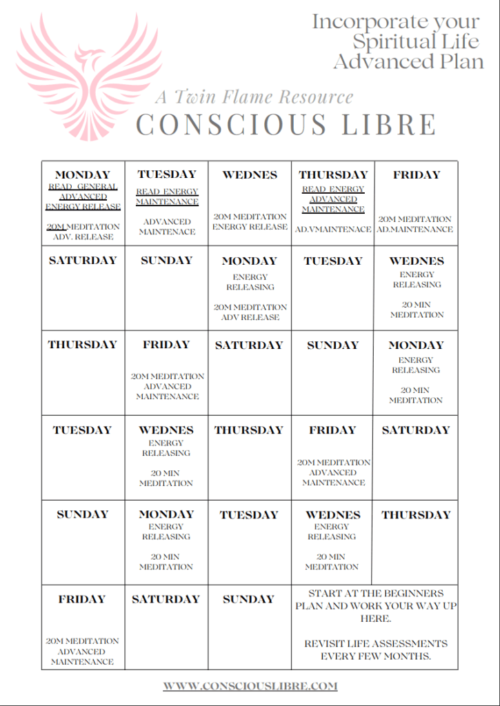 Start with the first and work your way through, or stick with each step as long as you feel you need. Each Plan is roughly a month, though I recommend doing each plan for at last 4 months each to give you plenty of time to practice and get really good at the methods and awareness. You cant ‘grow’ there in only a few weeks(usually). The plans stages are not about running through it once or remembering the methos, it is about gaining the energy and self awareness needed to move on.